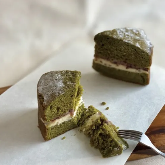 抹茶と粒あんのヴィクトリアケーキ